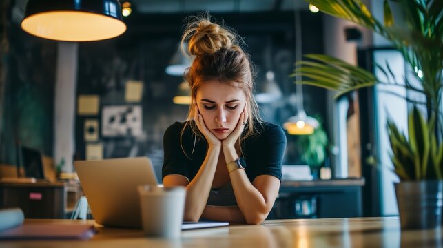 Woman developer reviewing code on clipboard in home office with laptop and code overlay