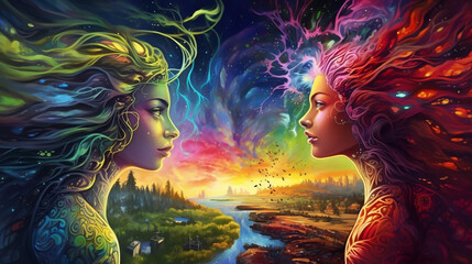 landscape filled with psychedelic colors, shapes, and patterns that alter perception and reality. Generative AI