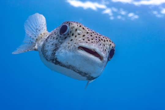 A curious Pufferfish / Porcupine fish on a tropical coral reef