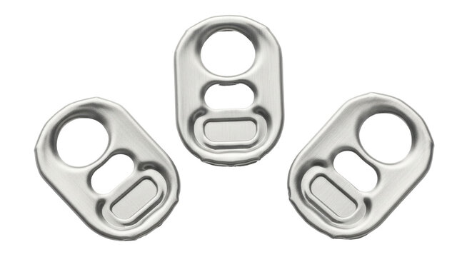 Isolated Soda Can Tabs, Group of Three, Silver Colored Metal for Recycling, Conservation