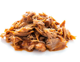 pulled pork isolated on white background, cut out