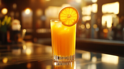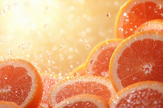 Backlit orange slice gleaming with vibrant juice, revealing pulpy texture against soft gradient backdrop, symbolizing fresh summer refreshment