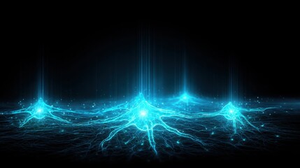 Enigmatic blue light pulsating across a deep black background creating an atmosphere of digital innovation and creativity