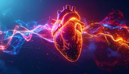 Heartbeat rhythm visualized in a neon light display, pulsating with life