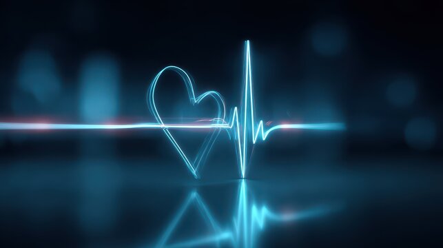 Heart with heartbeat graphic representation in a dark background showcasing intricate details and vibrant colors