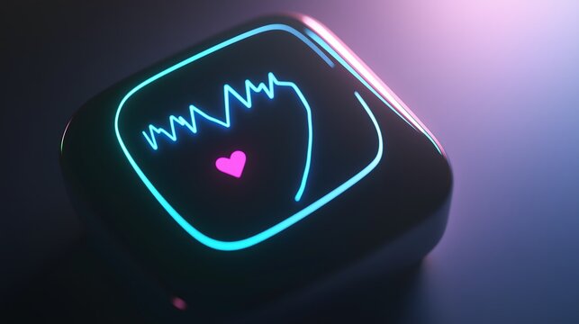 Futuristic Heart Rate Monitor with Neon Glow in 3D Cartoon Style featuring Cyberpunk Elements and Holographic Interface Design