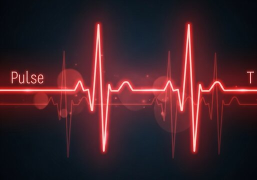 Red glowing heartbeat line against a dark blue background, monitoring life's rhythm
