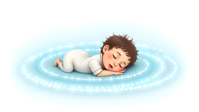 Alpha wave A creative digital painting of a sleeping child surrounded by soft, glowing alpha wave rings, each ring subtly pulsing in pastel blue(4)