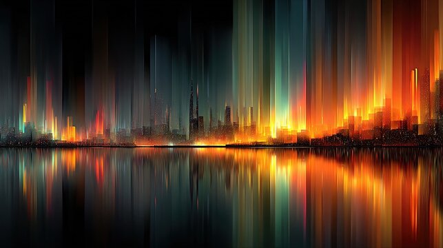 Pulsing neon audio spectrum with glowing equalizer bars over abstract light trails