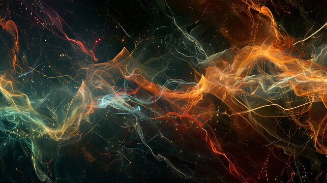 Abstract electronic waveforms pulsing in 4K, shimmering with vibrant colors, creating mesmerizing visual experience. dynamic movement evokes sense of energy and rhythm