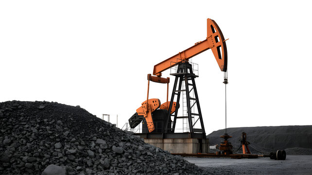 Oil pump jack petroleum energy industrial machine drilling rig equipment extraction field production well site on transparent background