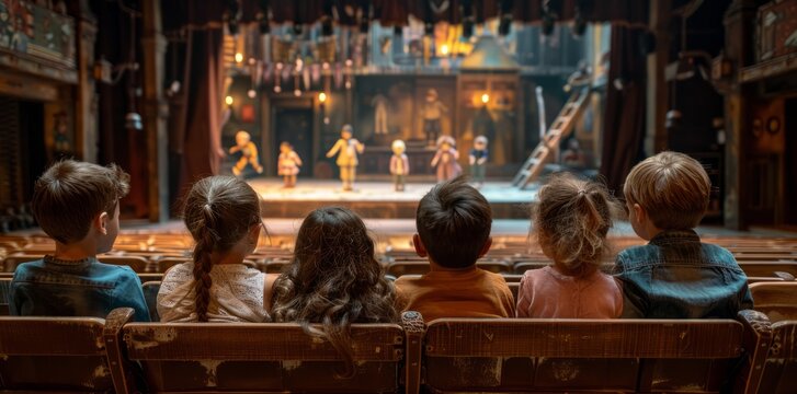 Children Watching Puppet Show in Theater