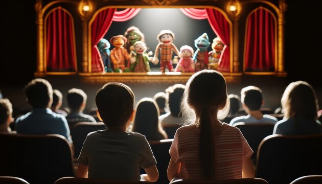 Children Watching Puppet Show with Fascination and Wonder