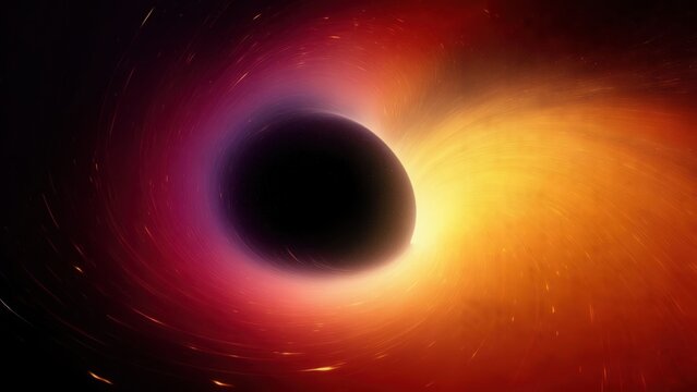 black hole with colorful rings and swirling accretion disk in space