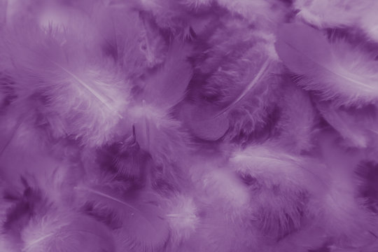 Beautiful abstract white and purple feathers on white background and soft white feather texture on white pattern and purple background, feather pink background , purple banners