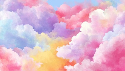 Dreamy background featuring a fantasy sky with fluffy yellow clouds resembling sugar cotton ideal for a copy space image