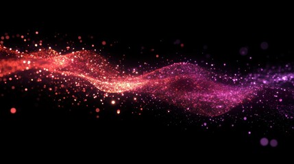 Vibrant red and purple glowing wave of particles on a black background, digital wave effect,