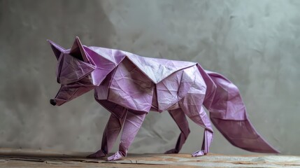 A purple elephant origami on blue and pink background