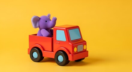Adorable Purple Elephant Toy Riding in a Red Toy Truck Fun Childhood Memories