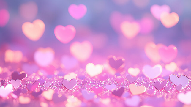 Pink and purple heart shapes with soft bokeh. Valentine day background for greeting card