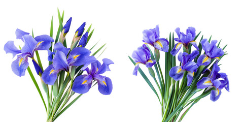 Bunch of purple iris flowers set isolated on white or transparent background. Floral arrangements