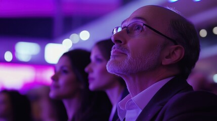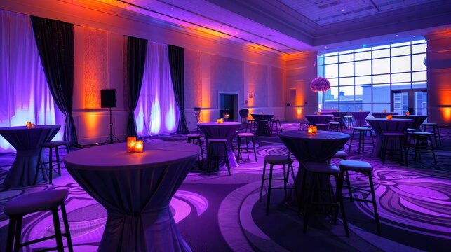 Unique purple lighting set up for a vibrant performance stage at an evening event