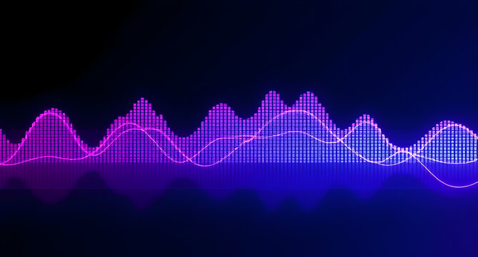 Digital wave spectrum background. Pulsing soundwave graph, neon purple and blue