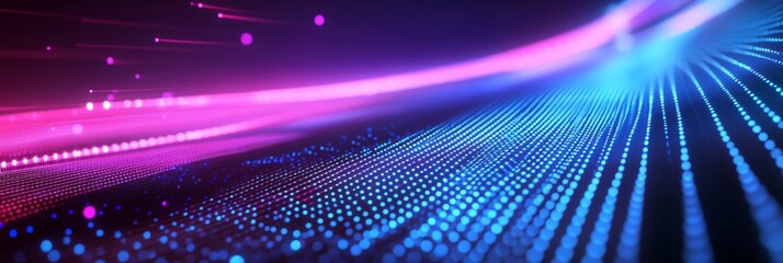 Vibrant neon light rays background, glowing blue and purple lines in space tunnel