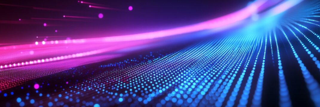 Abstract neon rings and waves in vibrant pink and purple gradient