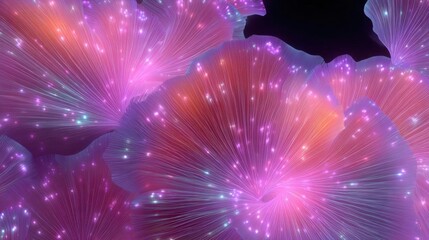 Abstract digital art piece that appears to be made up of multiple layers of pink and purple lines that form a spiral-like pattern.