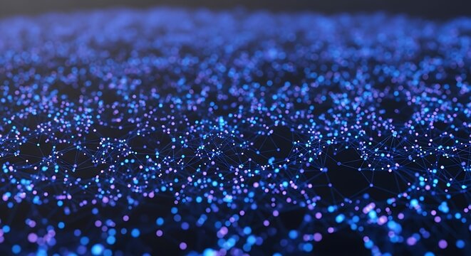 Digital landscape of glowing blue and purple network particles on a dark background