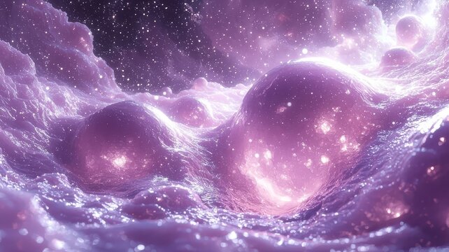 Glowing pink-purple nebula cluster of translucent floating spheres and holographic orbs