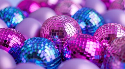 Colorful Mirror Balls and Shiny Purple Orbs for Festive Celebrations and Events