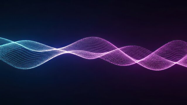 Glowing neon particles forming undulating digital wave with bokeh lights and depth