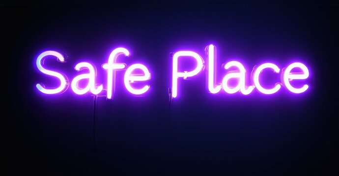 Purple neon script 'ladies' on black for retro designs