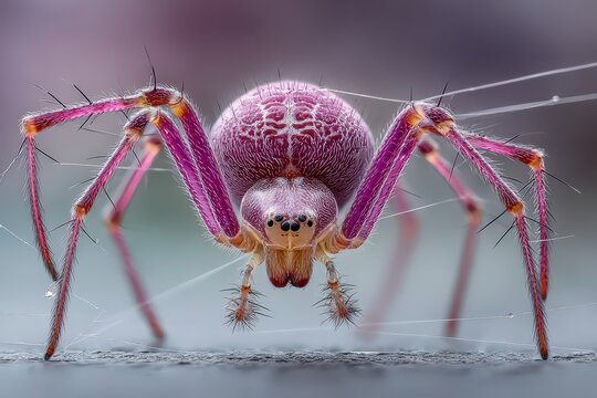 Mysterious Atmosphere of Purple Spider Web and Spider