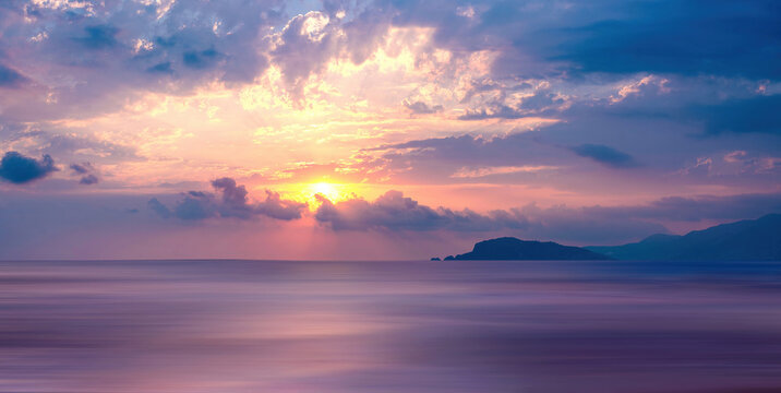 Very beautiful natural atmospheric seascape with purple sunset