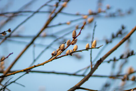 Salix Purpurea Nana and Olive Trees: Isolated on a white background, suitable for architectural projects.
