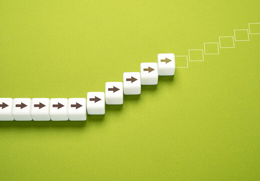 Start and continue growing. The concept of growth and development. Increasing the quality level. Climb to success. Get to the top. Progress, effort, and determination.