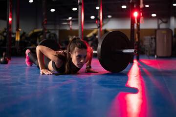 Man, push up and exercise for fitness at gym, body endurance and cardio workout of muscle growth. Bodybuilder, person and arms training for balance, strong core and challenge of sports performance