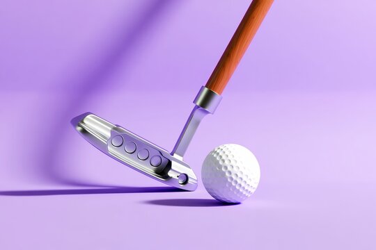 Close-Up of Golf Putter Aligning with White Ball on Green Surface - Precision and Golf Practice Concept