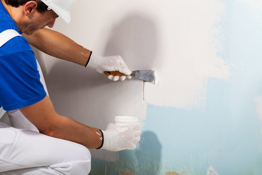 repairing walls with putty and spatula