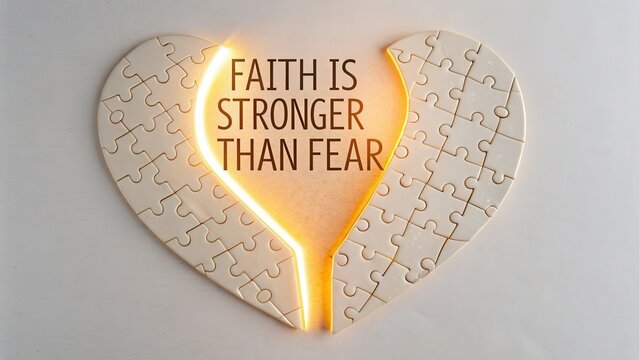 Heart Shaped Puzzle with Faith Is Stronger Than Fear Message