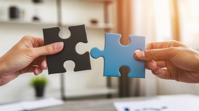 Mental health awareness with diverse hands holding puzzle pieces together.
