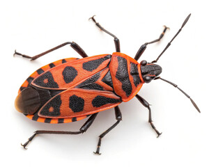 Firebug, Pyrrhocoris apterus, isolated on white, top view