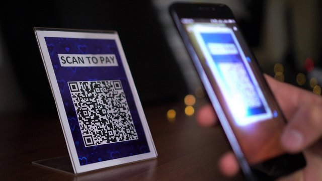 Smartphone scanning qr code for digital transactions