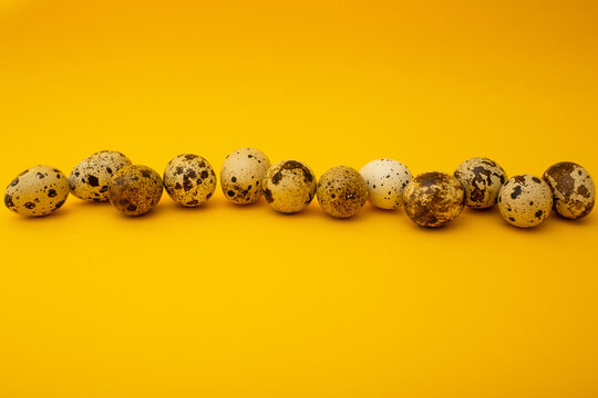 Quail eggs placed on a white background