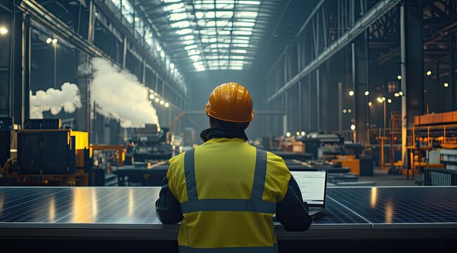 Engineer monitors smart factory systems in a modern industrial setting during the day