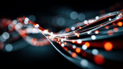 Abstract visualization of a quantum computing core with glowing data streams and fiber-like connections, representing artificial intelligence, data processing, quantum technology.