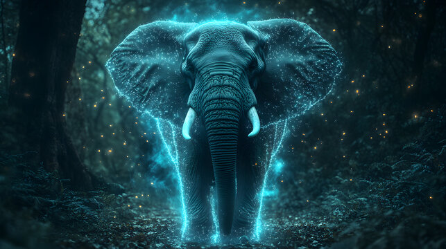 Binary spirit journey, AI elephant guides, fractal medicine space, data fog chambers, quantum ritual illumination